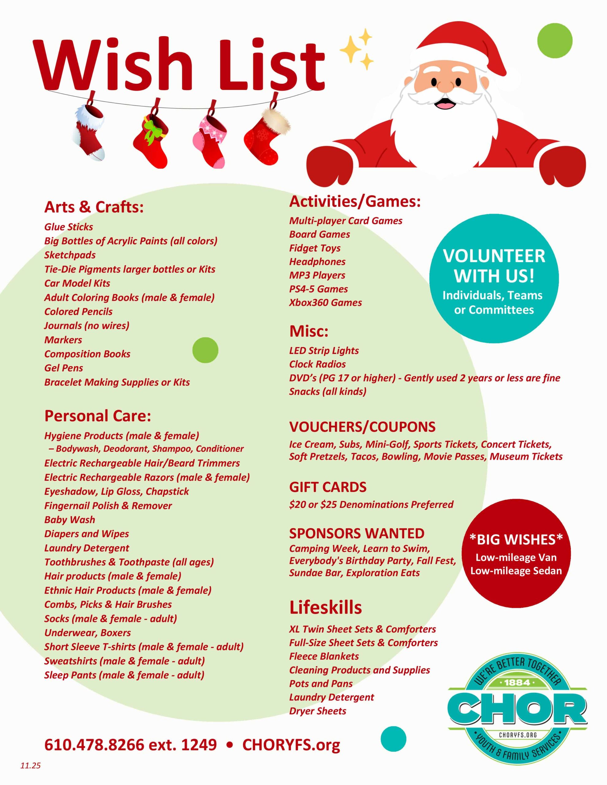 Become a Volunteer Elf • Shop for Gift Tag Wishes • Donate Gift Cards Set up an Angel Tree • Wish List Items Collection • Contribute Funds • Spread The Word